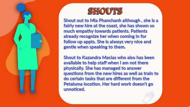 Rebecca K: Infectious Diseases Update, New Wellness Staff, Ramona E: Dental Week Shouts