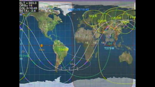 Live video from the International Space Station includes internal views when the crew is on-duty and Earth views at other times. The video is accompanied by audio of conversations between the crew and Mission Control. This video is only available when the space station is in contact with the ground. During "loss of signal" periods, viewers will see a blue screen. Since the station orbits the Earth once every 90 minutes, it experiences a sunrise or a sunset about every 45 minutes. When the station is in darkness, external camera video may appear black, but can sometimes provide spectacular views of lightning or city lights below.